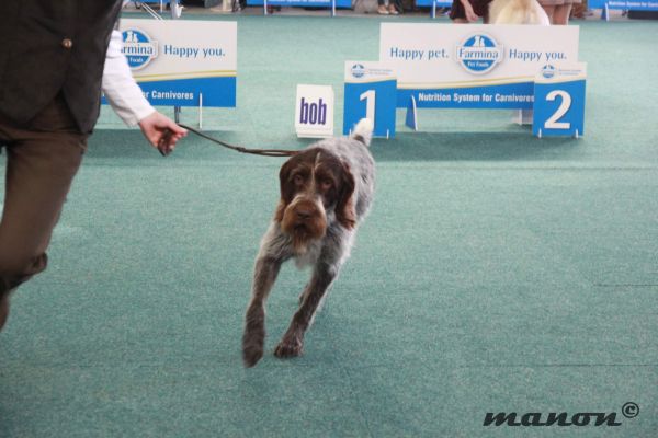 Greta (tmavý bělouš) ve věku necelých 10 měsíců porazila feny ve třídě mladých, dále psa s titulem CAJC a získala titul BOJ. Ve finále o titul BOB zůstali pouze 2 čeští fousci a oba byli Darovi potomci: Eldorádo a Greta. K velkému překvapení všech si titul BOB odnesla mladá Greta. Měla jsem z jejího úspěchu obrovskou radost. V odpoledních soutěžích získala titul BIG 3. Přeji jí a jejím majitelům hodně úspěchů v budoucnosti.