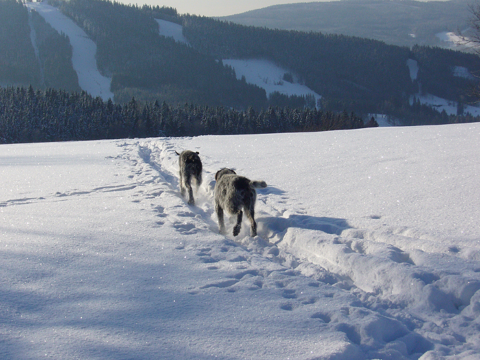 Mírné zimy r. 2013/2014 využíváme nejen k výcviku, ale i k výletům do přírody a k turistice. Kvůli nedostatku sněhu jsme ještě nebyli v ´bílé stopě´.